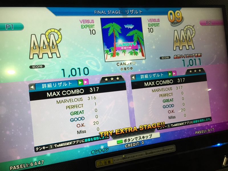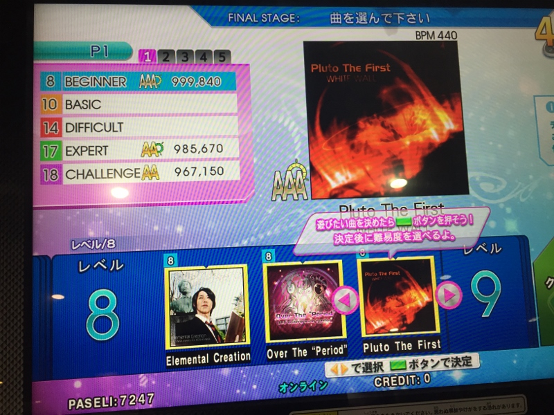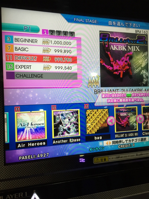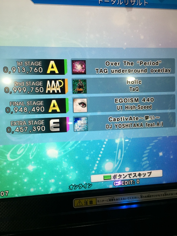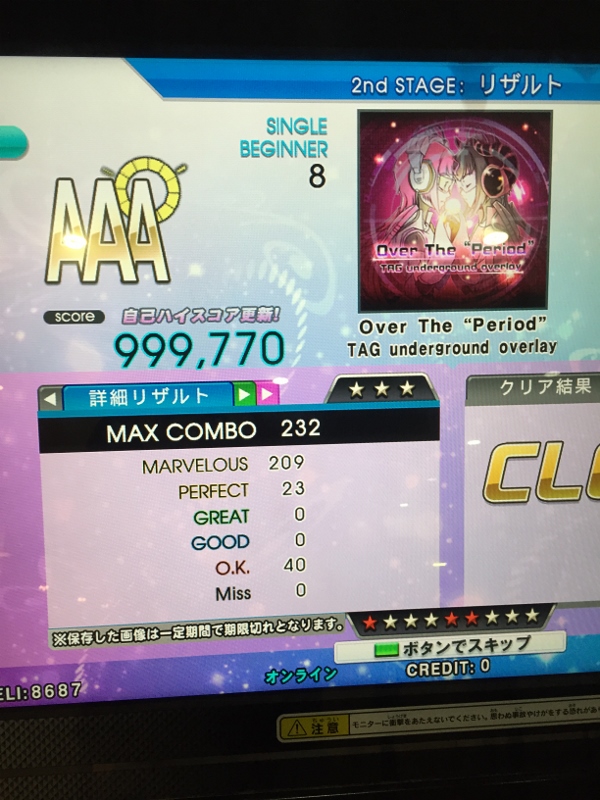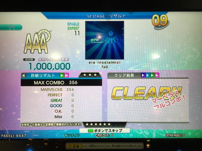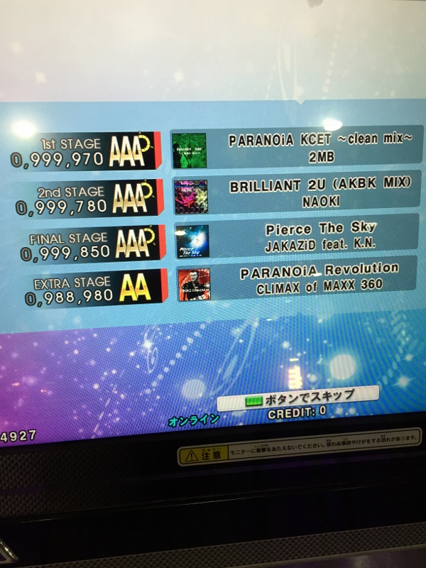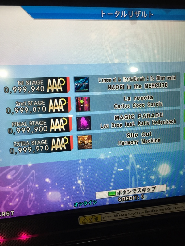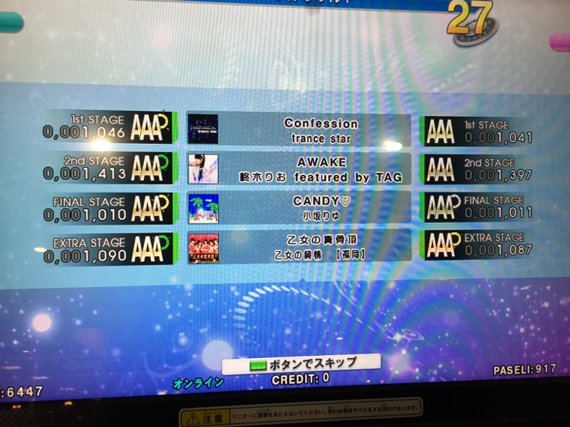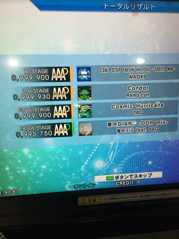 最後が全然踏めないwwそして低速から早くなって交互踏みが難しいところも落としまくってるので、そのあたり改善できればAA見えてきそう