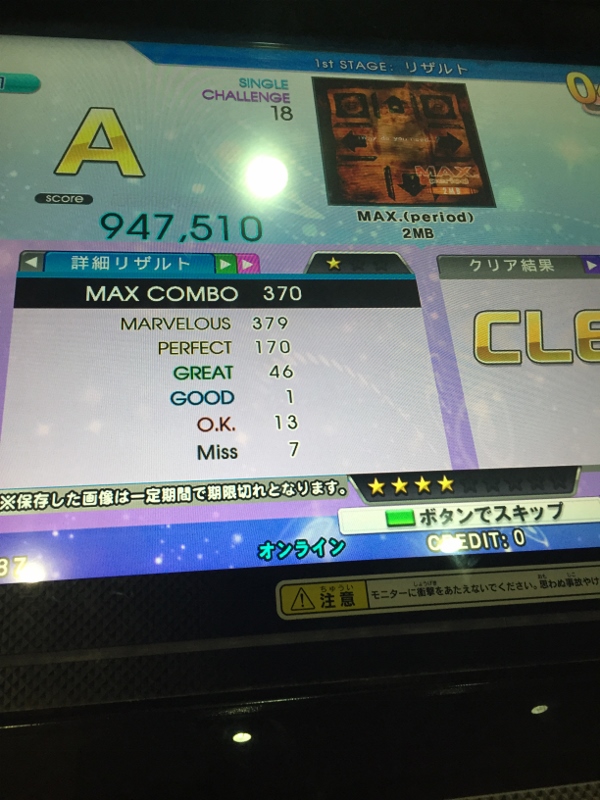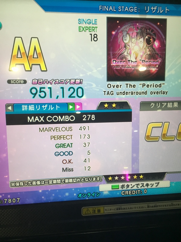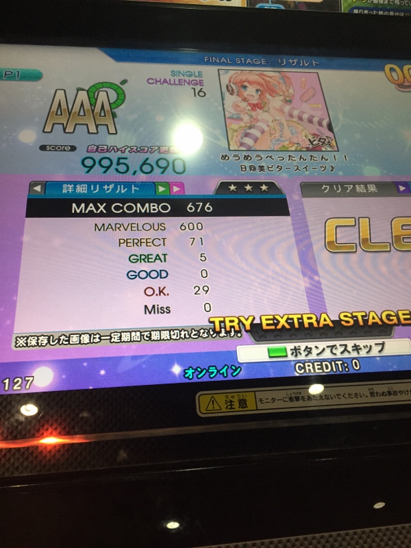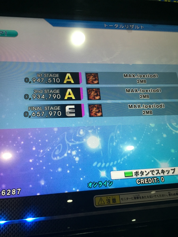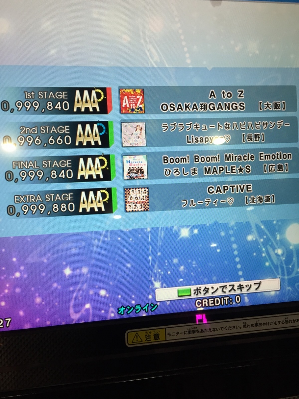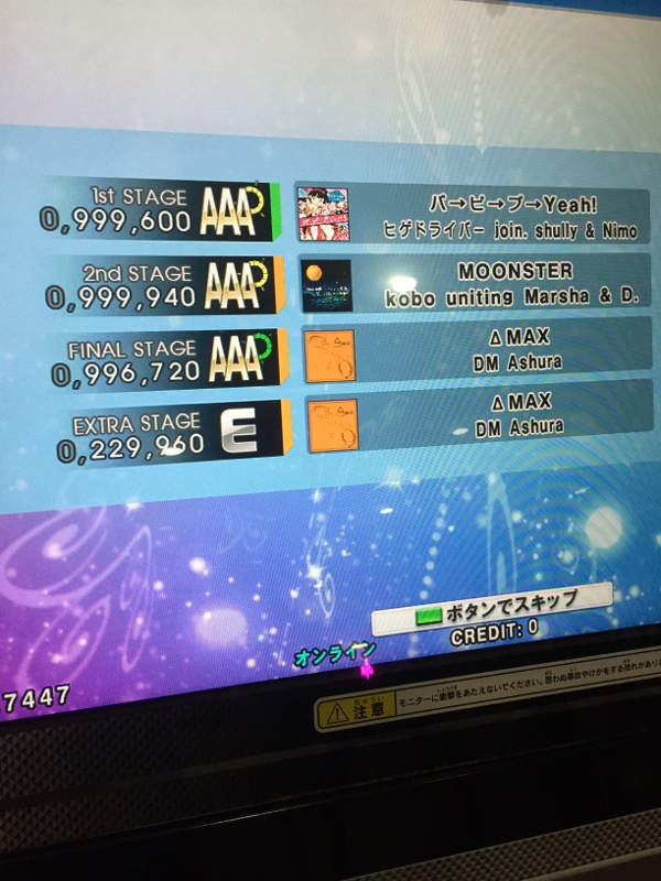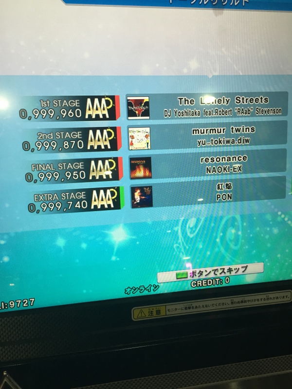 これは最後までかなり踏めてて絶対AA行けると思った瞬間最後の連続停止地帯間違えてグダグダに><もったいなかった
