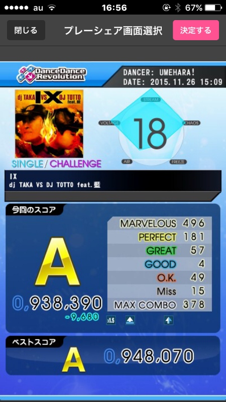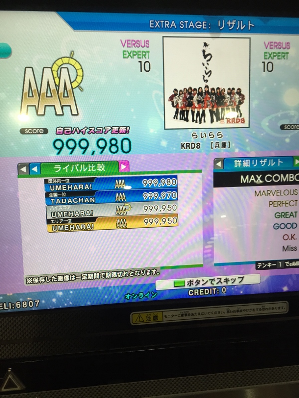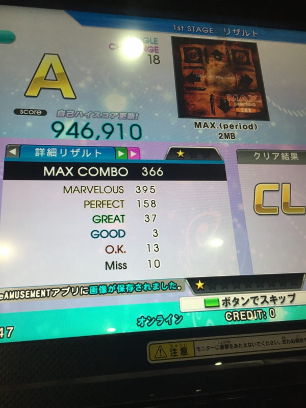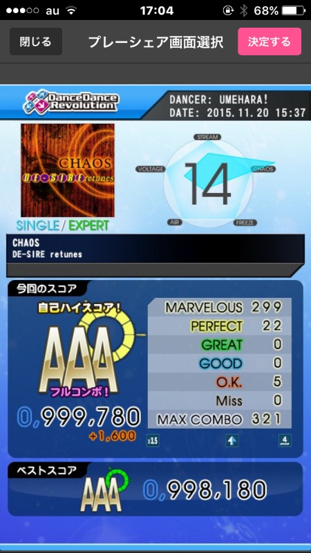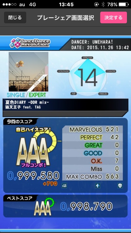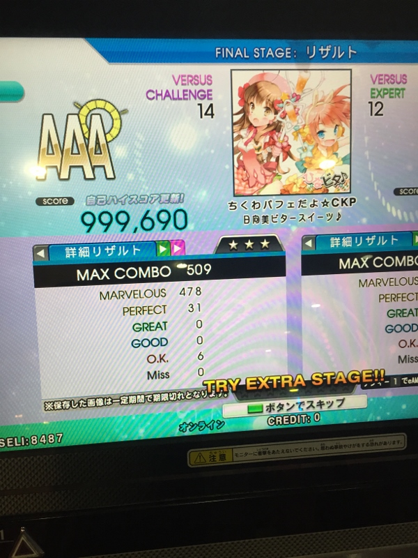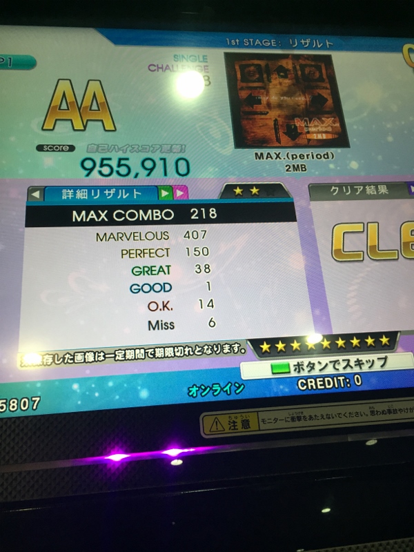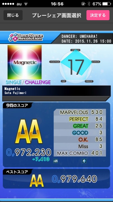 これは最後までかなり踏めてて絶対AA行けると思った瞬間最後の連続停止地帯間違えてグダグダに><もったいなかった