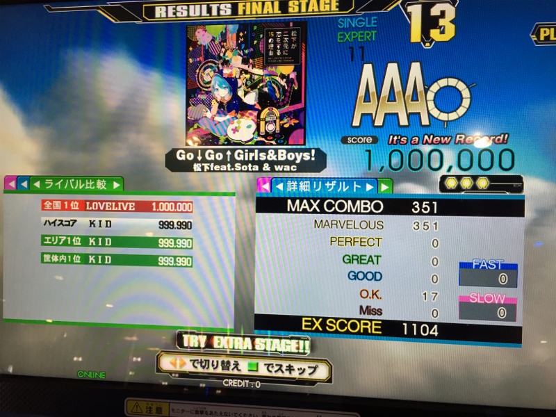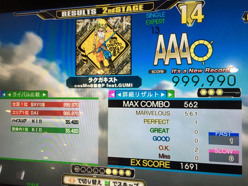 そろそろ一発で取れる曲も無くなってきたので、ここから粘着が始まると思うとなかなか厳しい戦いの予感!!