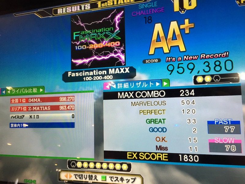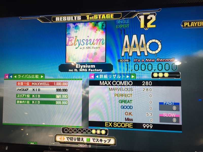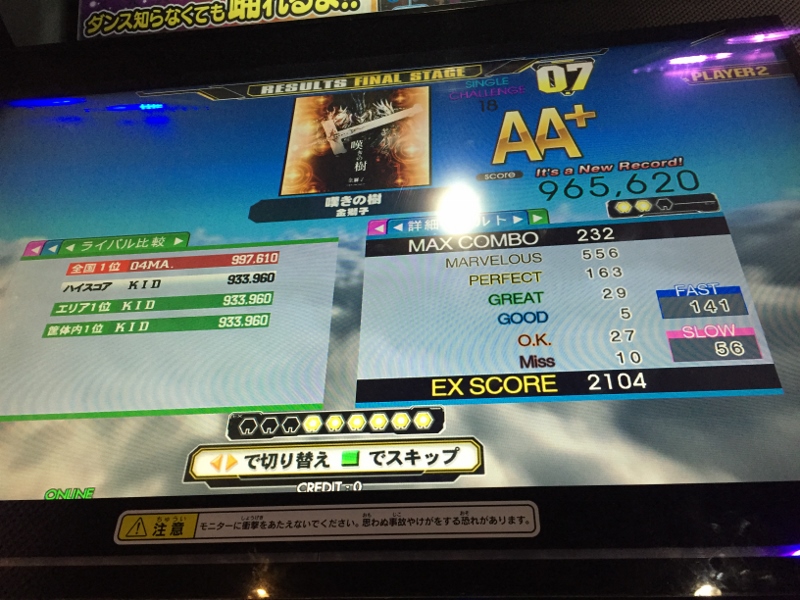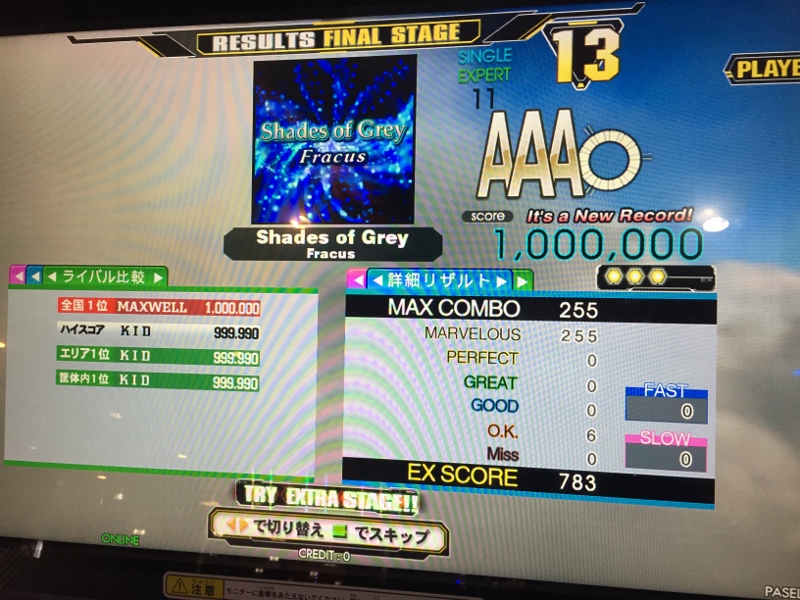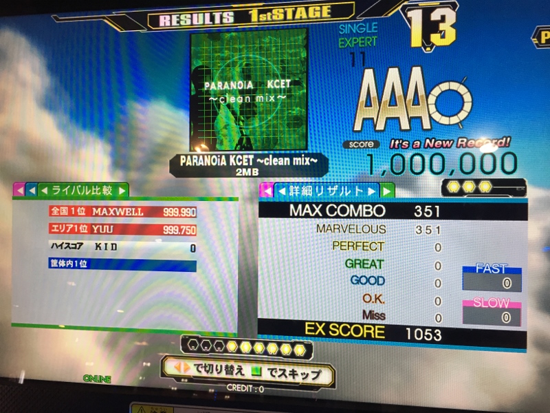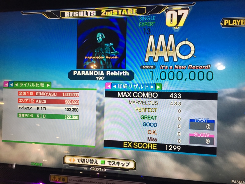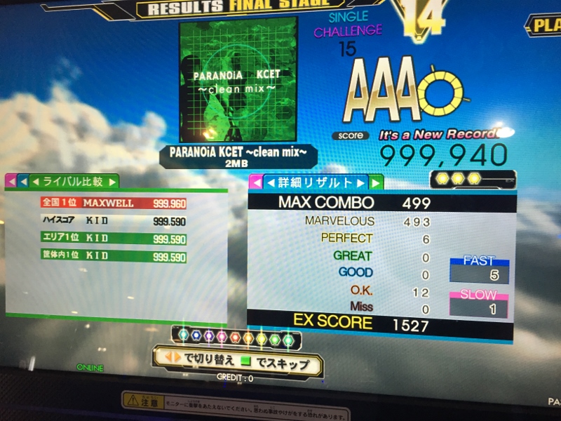 いろんな曲を回してみたけど、どれもMFCは難しくて、結局何人か潰してるパラリバをゲット!!