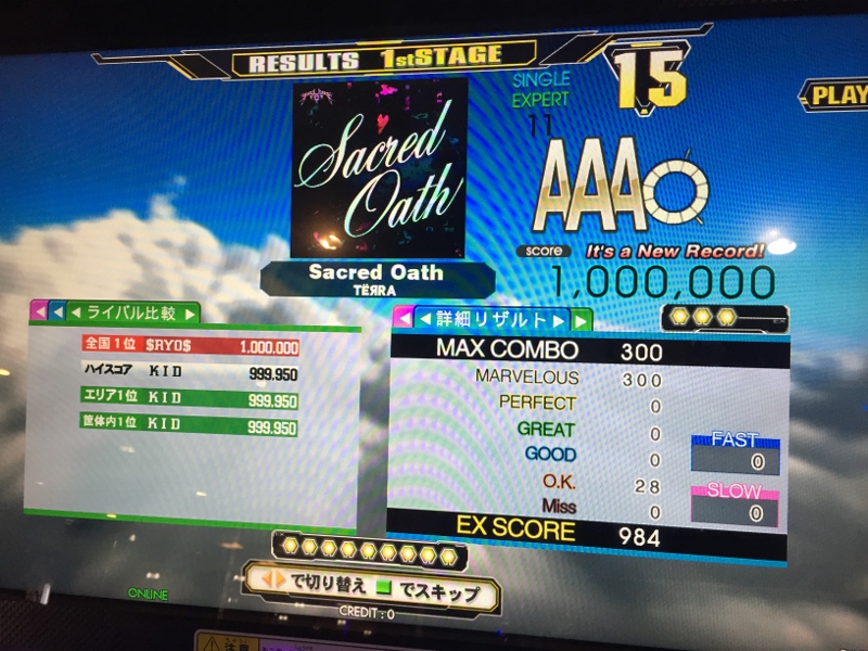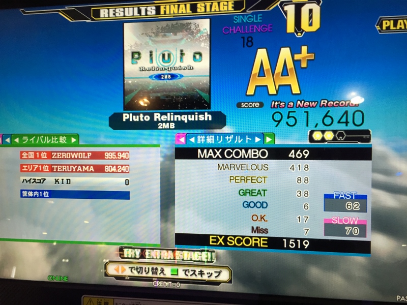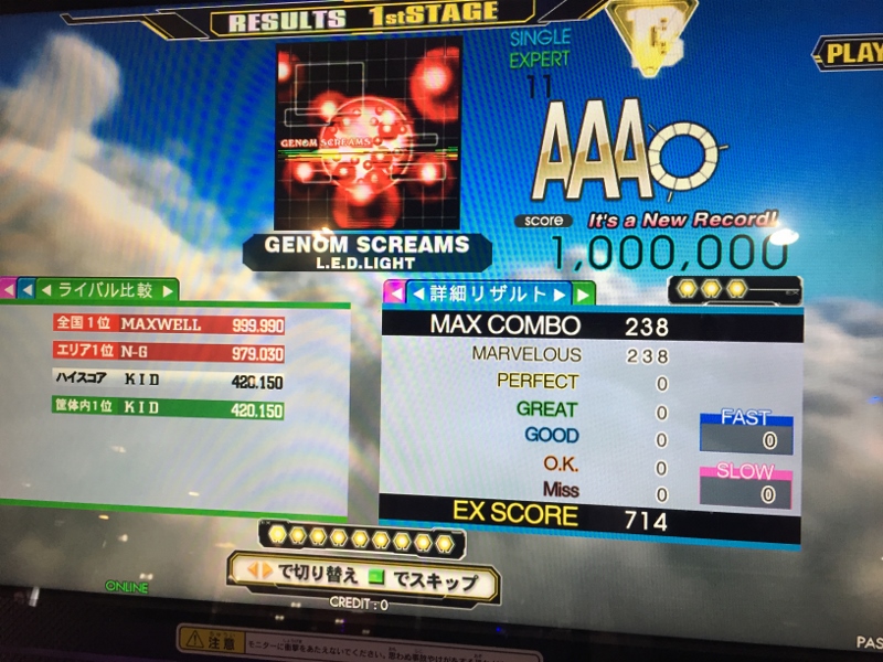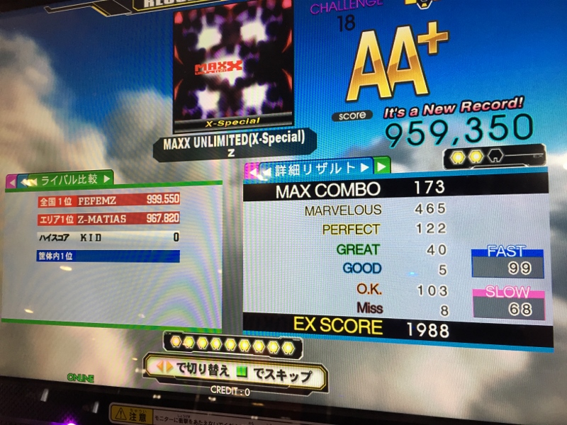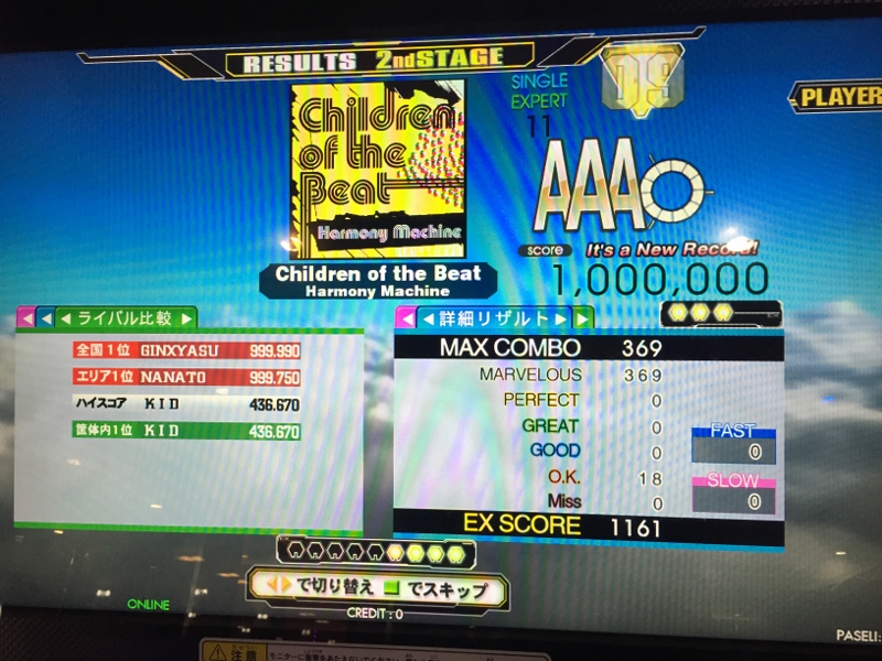 18のAA取り直ししてたけど、判定緩和のおかげで6譜面一発で行けた!!