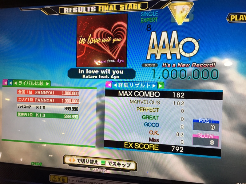 10譜面MFC出きたけど、一番かかったのはin love wit you で5クレ