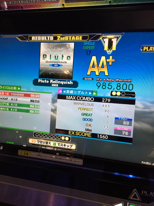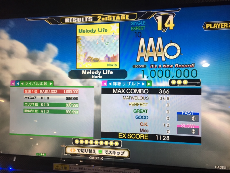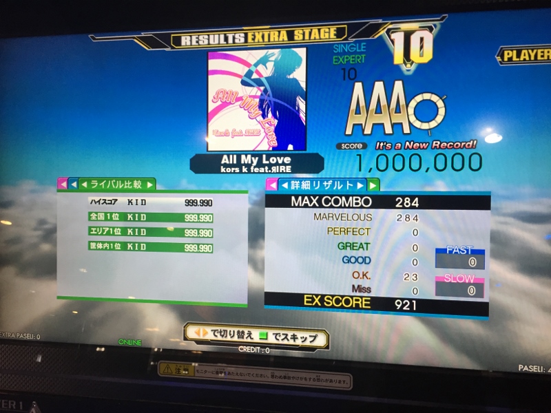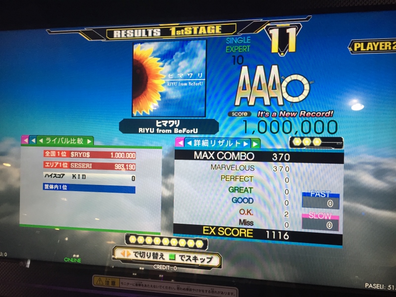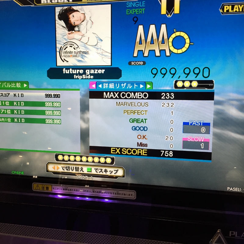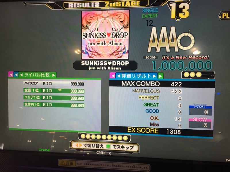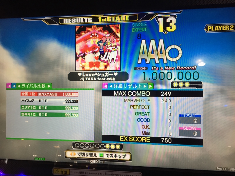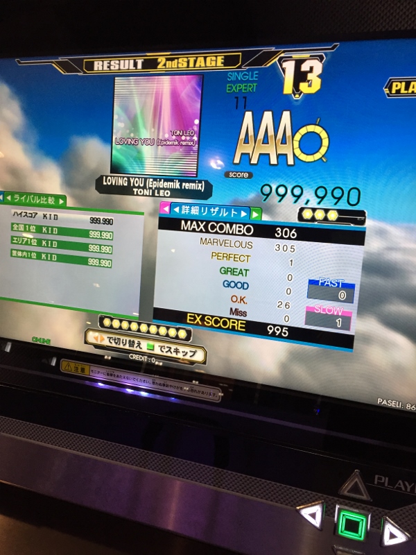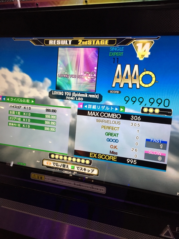 当時はまだ激でのPFCがようやく取れだした頃で何回もやってなんとかPFC取れた思い出の曲!!
