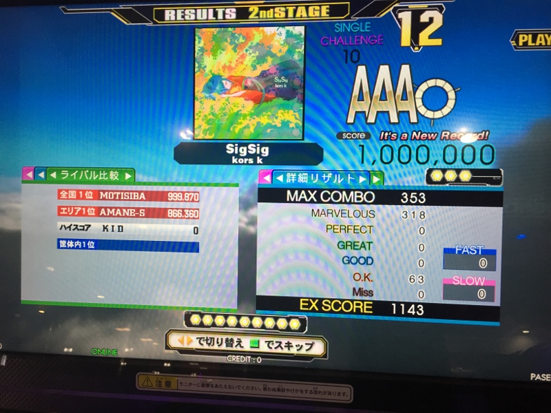 パフェが出たら捨てゲーして次の曲にいって、少しでも体力といらいらをためないように心掛けたw