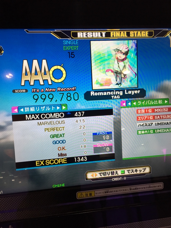 計算式変わってこんなのでもAA出たり83出たりするのはなんか違和感あるけど、うまくなった気分になれるからいいかもw