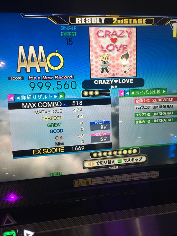 2クレ目で当時の全一が出たので発狂BUZZに移行!!