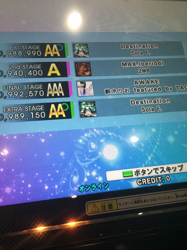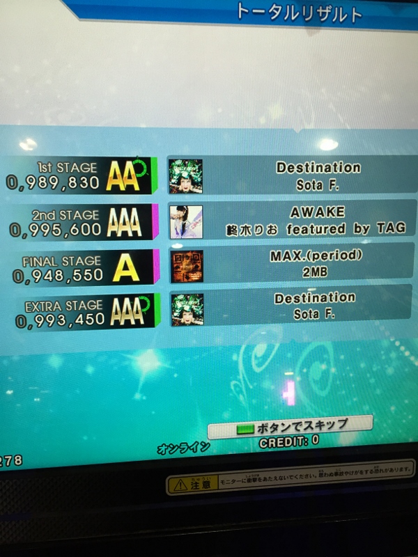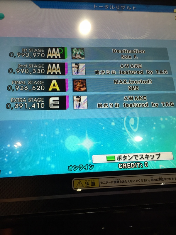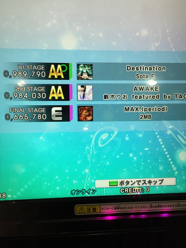 相変わらずデスティネーションが出来ていないのと、アウェイクで最後ミスッたのが痛かったけど、ピリオドが1万5千点くらい伸びたのでOK