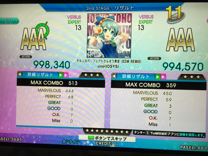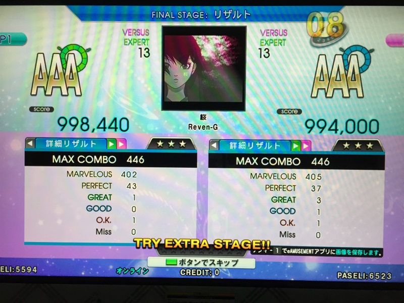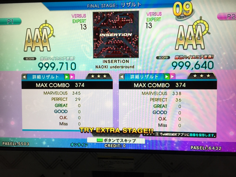 インサーション><><なんとかPFCしてどうなったか!!と横見たらパフェ数負けwwツええ!!こんな曲でマベ狙う余裕ないw
