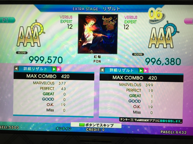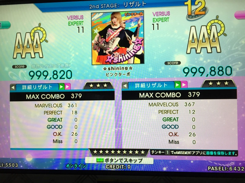 残念やったけど、めったに対戦できないCGさんといっぱい踏めてめちゃ楽しかった!!やはりBUZZが一番DDRで楽しいと感じる!!スコアの殴り合いステキ(^_-)-☆