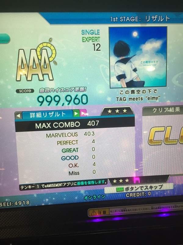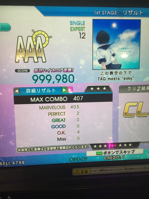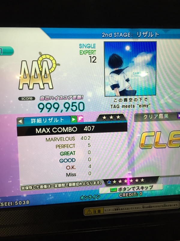 とりあえずここで今日は終了、300コンボ地帯が絶えれればMFCは簡単そう!!