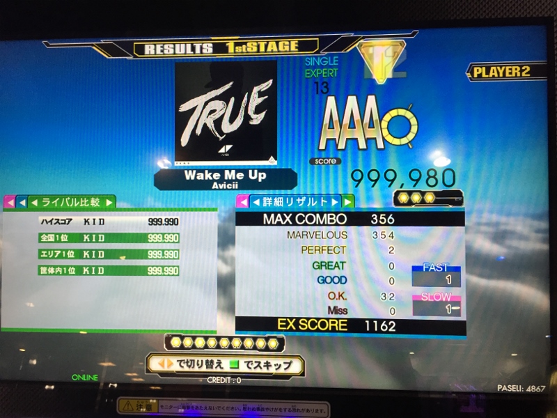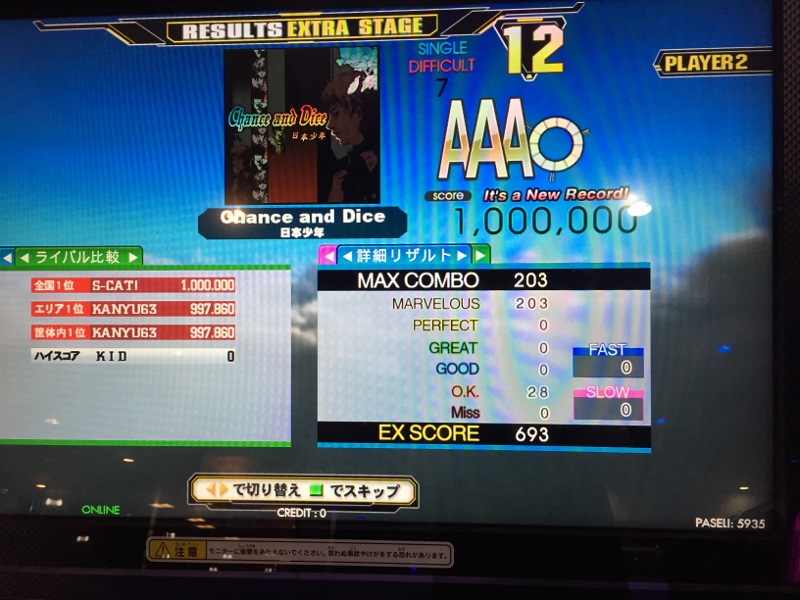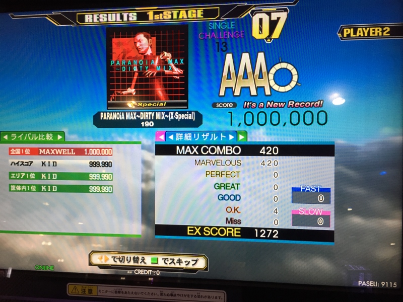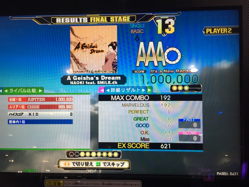 最後は新曲の逆詐欺13が潰せなかったのと、レベル15がグレ1止まりだったのが残念